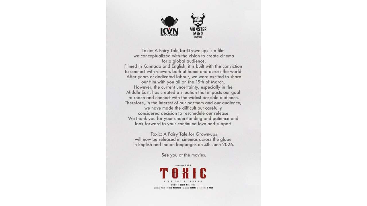 Toxic: A Fairy Tale for Grown-ups will now be released in cinemas across the globe in English and Indian languages on 4th June 2026.